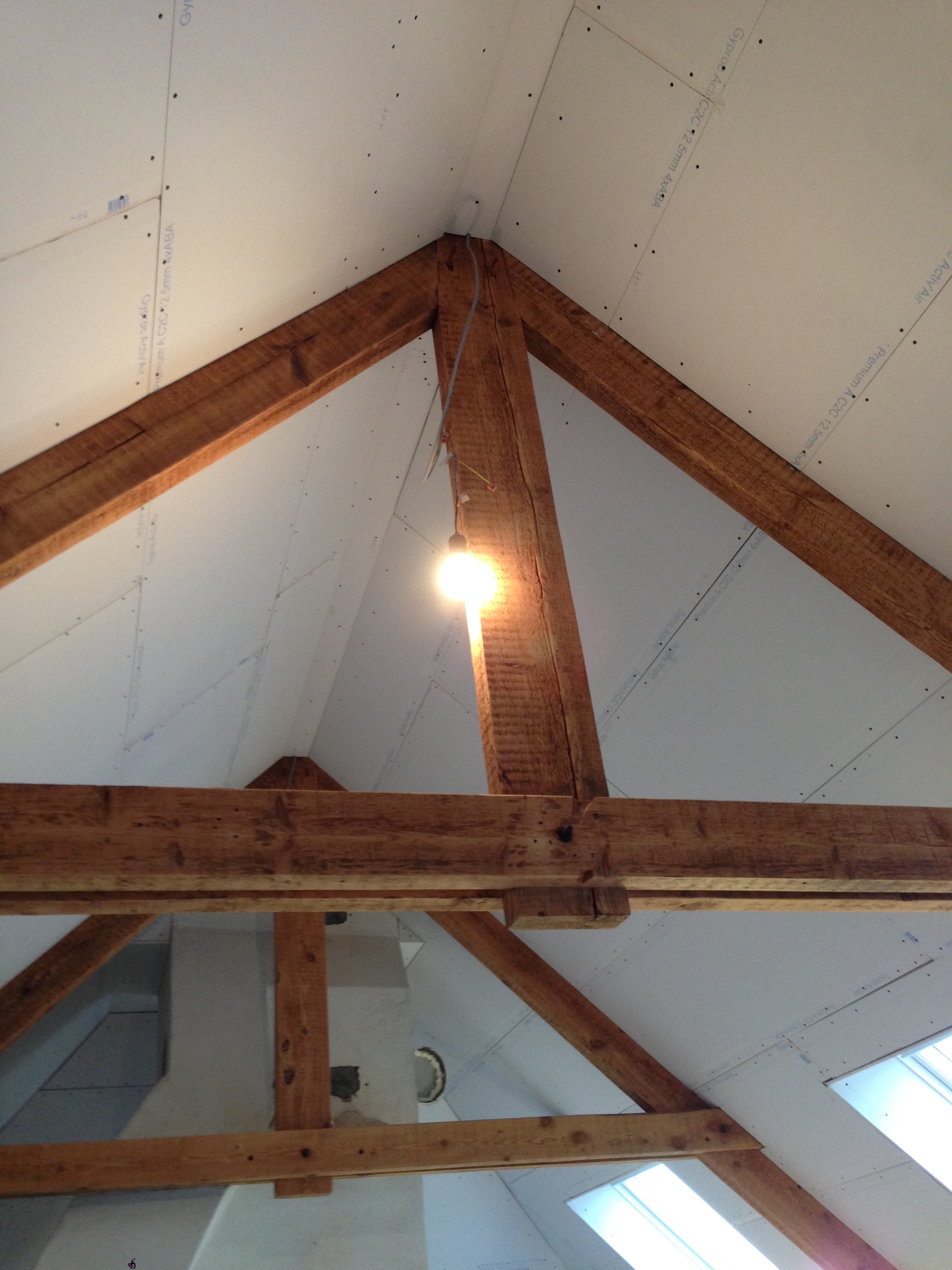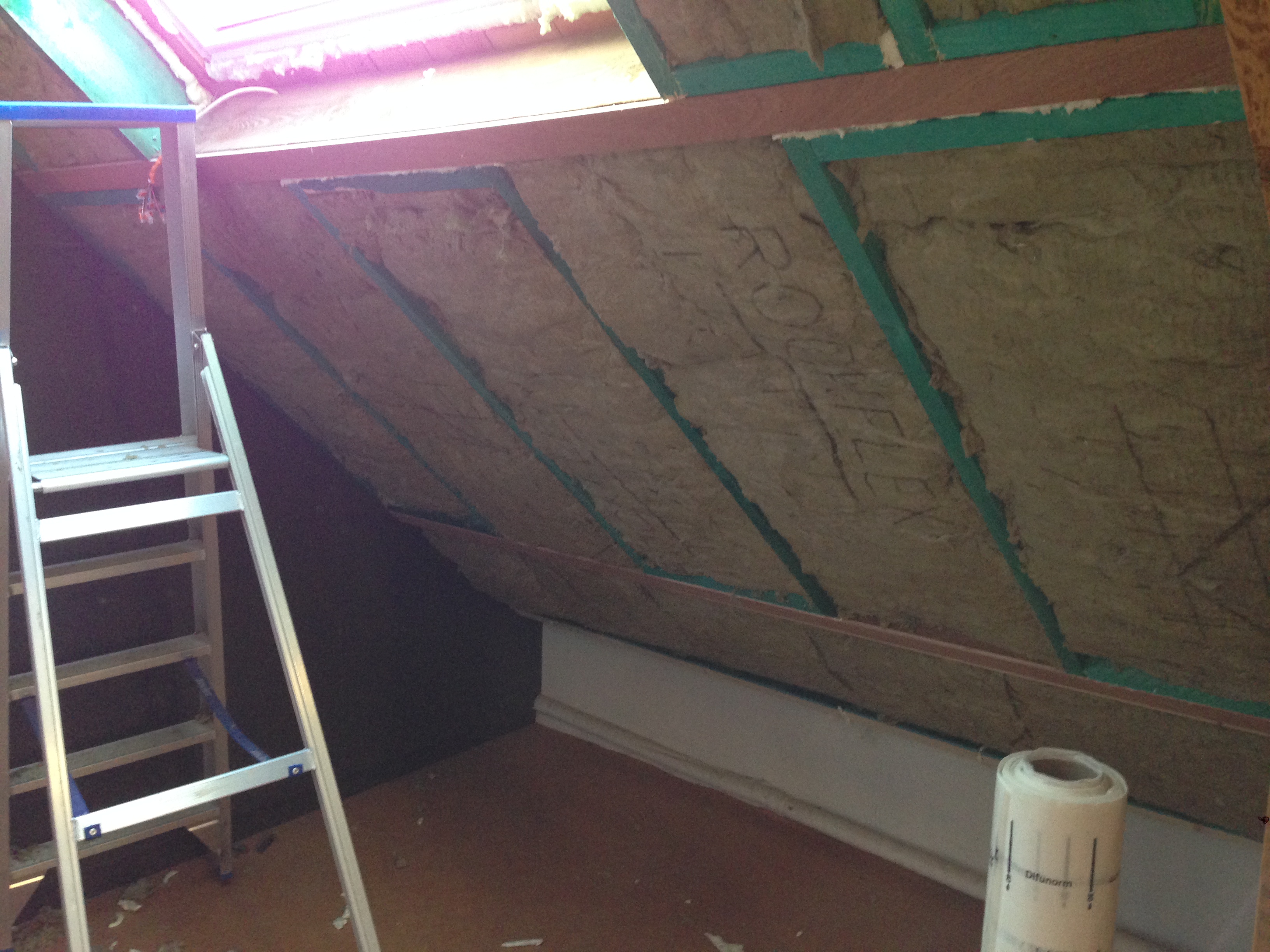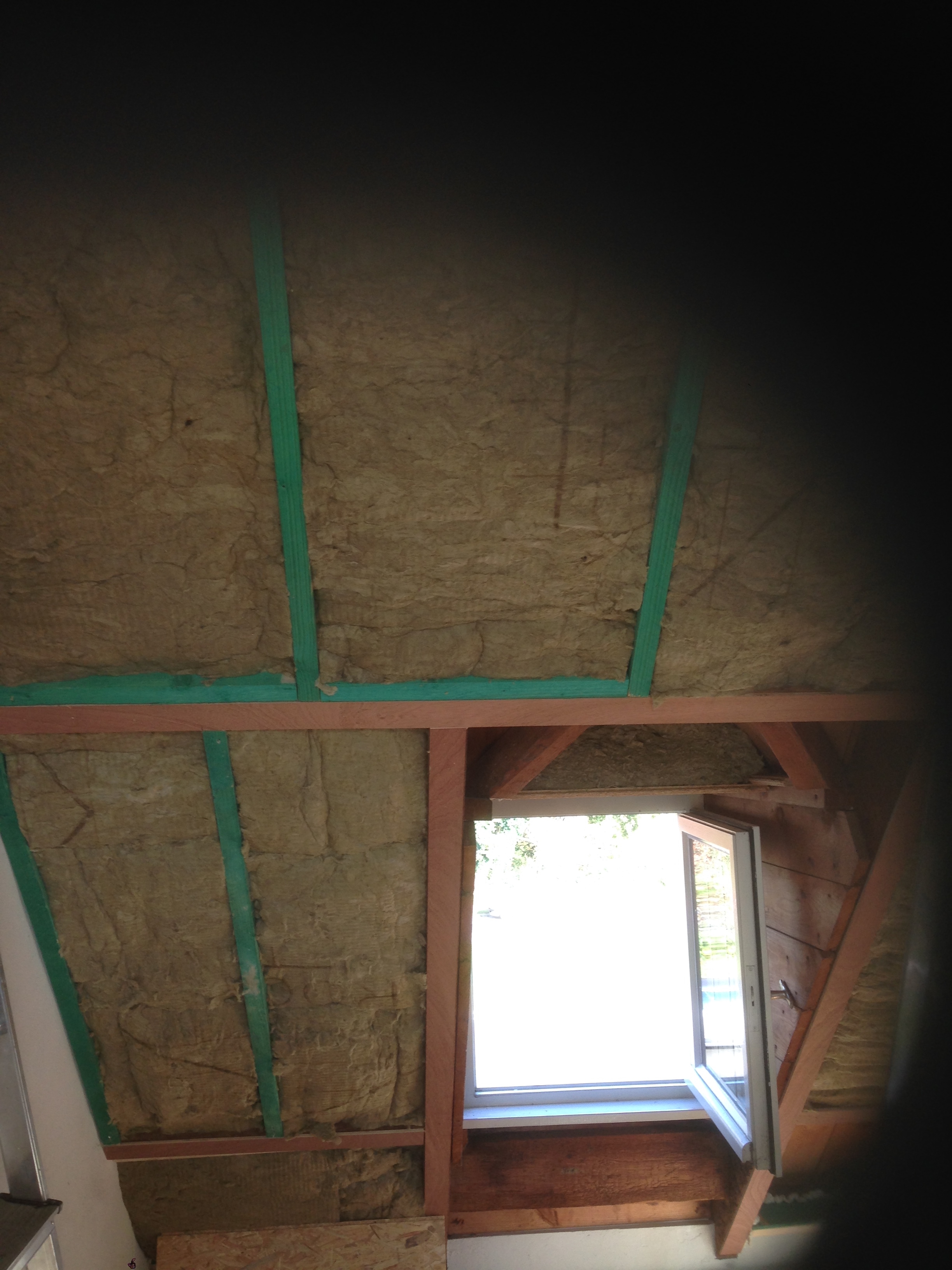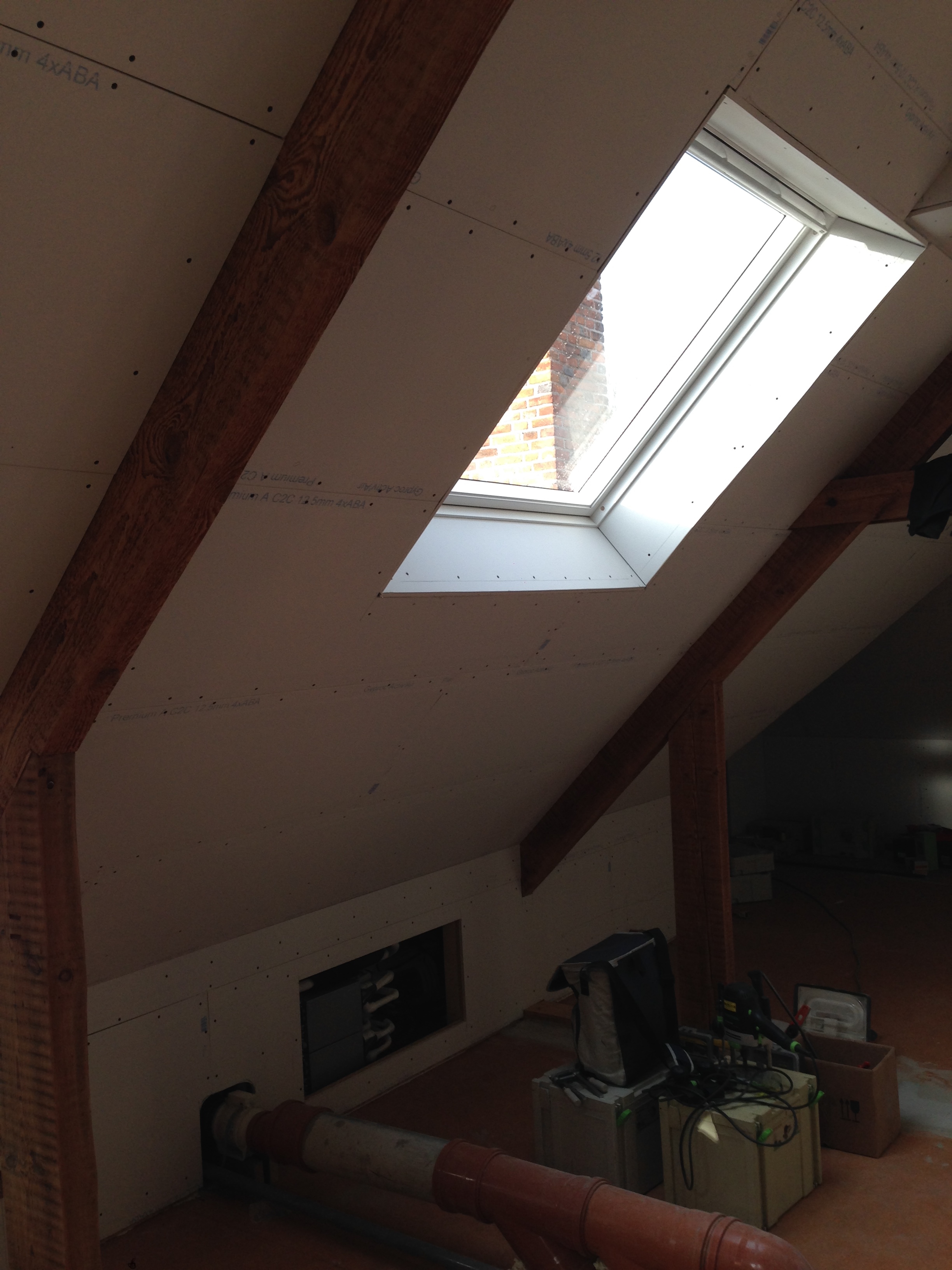 Zolder langs binnen uit voorzien van extra spanten om de 18 cm dikke isolatie tussen te plaatsen.
