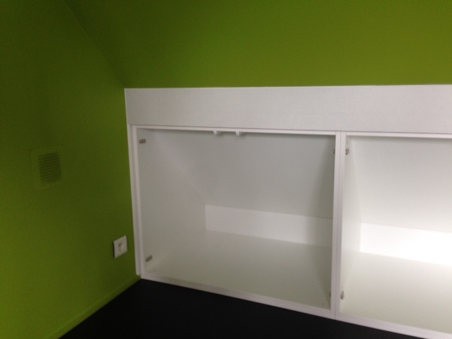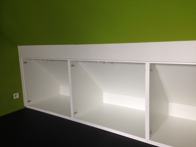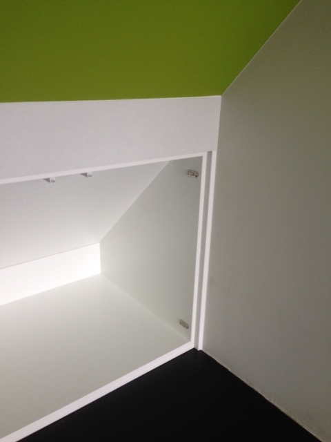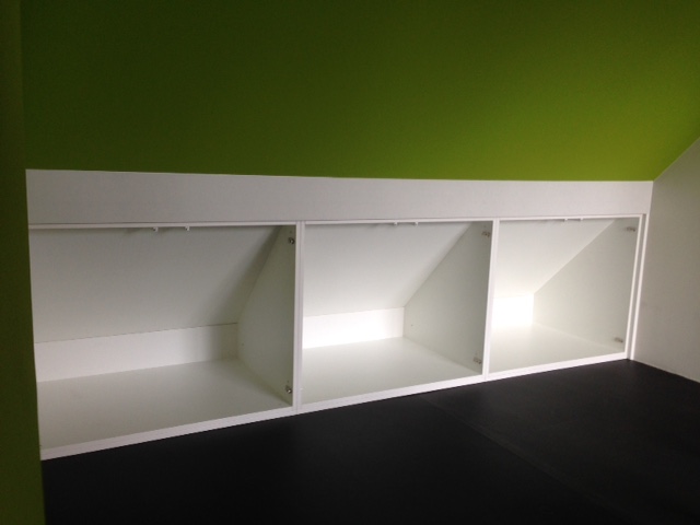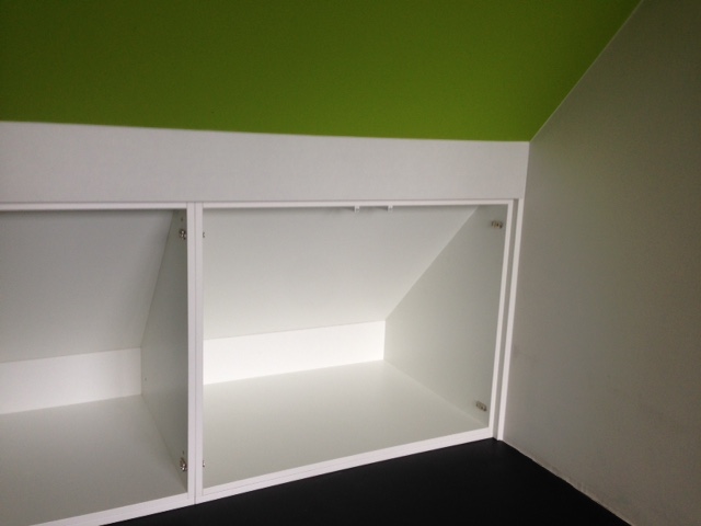 op maat gemaakte kasten onder de schuine zijde van het dak.